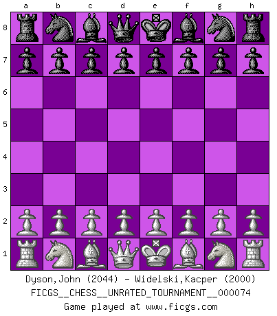 First move 2026 March 13 2:8:8 White clock - 39 days 17:09:17 Black clock - 40 days 00:00:00 [Event "FICGS__CHESS__UNRATED_TOURNAMENT__000074"] [Site "FICGS"] [Date "2026.03.13"] [Round "1"] [White "Dyson,John"] [Black "Widelski,Kacper"] [Result "*"] [WhiteElo "2044"] [BlackElo "2000"] 1.* Follow this game move after move (download)When asked, -How is that you pick better moves than your opponents?, I responded: I'm very glad you asked me that, because, as it happens, there is a very simple answer. I think up my own moves, and I make my opponent think up his. (Alexander Alekhine) Der Umstand, daß uns eine 7 Stunden Zeitkontrolle ermöglicht eine großartige, tiefe Partie zu spielen, ist für die Massenmedien nicht weiter von Bedeutung. (Alexej Shirov) El Ajedrez es tan inspirador que yo no creo que un buen jugador sea capaz de tener un pensamiento malo durante una partida. (Wilhelm Steinitz) Vous n'êtes pas toujours obligé de jouer le meilleur coup. Un coup doit être actif, entreprenant, correct et beau ! (David Bronstein) Whoever said the pen is mightier than the sword obviously never encountered automatic weapons. (US General Douglas MacArthur)