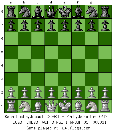 First move 2026 March 20 23:30:55 White clock - 29 days 07:21:32 Black clock - 30 days 00:00:00 [Event "FICGS__CHESS__WCH_STAGE_1_GROUP_01__000031"] [Site "FICGS"] [Date "2026.03.20"] [Round "1"] [White "Kachibacha,Jobadi"] [Black "Pech,Jaroslav"] [Result "*"] [WhiteElo "2090"] [BlackElo "2194"] 1.* Follow this game move after move (download)When you don't know what to play, wait for an idea to come into your opponent's mind. You may be sure that idea will be wrong. (Siegbert Tarrasch) Ich hatte Angst gegen einen russischen Großmeister zu verlieren, und er befürchtete gegen einen kleinen Jungen zu verlieren. (über ein Remis gegen Juri Awerbach). (Robert James Fischer) El Ajedrez es realmente noventa y nueve por ciento calculación. (Soltis) Assurément je connaissais par expérience le mystérieux attrait de ce jeu royal, le seul entre tous les jeux inventés par les hommes qui échappe souverainement à la tyrannie du hasard, le seul où l'on ne doive sa victoire qu'à son intelligence ou plutôt à une certaine forme d'intelligence. Mais n'est-ce pas déjà le limiter injurieusement que d'appeler les échecs un jeu ? N'est-ce pas une science, un art ou quelque chose qui, comme le cercueil de Mahomet entre ciel et terre, est suspendu entre l'un et l'autre, et qui réunit un nombre incroyable de contraires ? [...] C'est une pensée qui ne mène à rien, une mathématique qui n'établit rien, un art qui ne laisse pas d'uvre, une architecture sans matière; et il l'a prouvé néanmoins qu'il était plus durable, à sa manière, que les livres ou que tout autre monument, ce jeu unique qui appartient à tous les peuples et à tous les temps, et dont personne ne sait quel dieu en fit don à la terre pour tuer l'ennui, pour aiguiser l'esprit et stimuler l'âme. Où commence-t-il, où finit-il ? (Stefan Zweig) God, you are such an idiot. - Actually, I thought I was more of a jerk. (Gregory House to Stacy Warner, House M.D.)