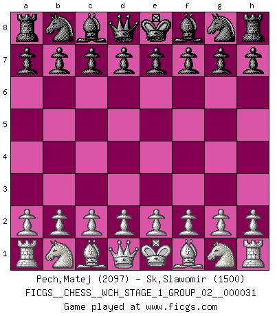 First move 2026 March 20 23:30:58 White clock - 29 days 09:16:16 Black clock - 30 days 00:00:00 [Event "FICGS__CHESS__WCH_STAGE_1_GROUP_02__000031"] [Site "FICGS"] [Date "2026.03.20"] [Round "1"] [White "Pech,Matej"] [Black "Sk,Slawomir"] [Result "*"] [WhiteElo "2097"] [BlackElo "1500"] 1.* Follow this game move after move (download)No Chess Grandmaster is normal; they only differ in the extent of their madness. (Viktor Korchnoi) Bis zum Jahr 1971 verlief in meiner Schachkariere alles glatt. Dieses dramatische Match [Fischer-Taimanov 6:0] machte mein Leben zur Hölle. (Mark Taimanov) Fischer era un maestro de claridad y un Rey del posicionamiento astuto. Sus oponentes podían ver hacia donde se dirigía pero eran impotentes para detenerlo. (Bruce Pandolfini) On croit qu'il y a plus de mauvais joueurs que de bons joueurs, c'est faux : Il y a autant de joueurs qui gagnent que de joueurs qui perdent. (Philippe Geluck) Opportunities multiply as they are seized. (Sun Tzu)