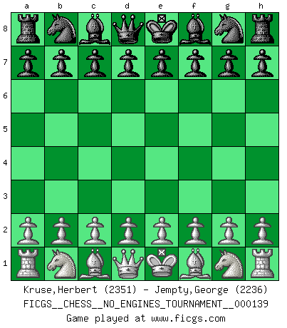 First move 2026 April 14 13:8:59 Herbert Kruse ... is in vacation until 2026 April 15 7:12:30 White clock - 40 days 00:00:00 Black clock - 40 days 00:00:00 [Event "FICGS__CHESS__NO_ENGINES_TOURNAMENT__000139"] [Site "FICGS"] [Date "2026.04.14"] [Round "1"] [White "Kruse,Herbert"] [Black "Jempty,George"] [Result "*"] [WhiteElo "2351"] [BlackElo "2236"] 1.* Follow this game move after move (download)When your house is on fire, you can't be bothered with the neighbors. Or, as we say in Chess, if your King is under attack you don't worry about losing a Pawn on the Queen's side. (Gary Kasparov) Wenn du auf das Glück wartest, wird das Leben ziemlich langweilig. (Mikhail Nekhemyevich Tal) El Peón aislado arroja penumbra sobre todo el tablero. (Aaron Nimzovich) À la honte des hommes, on sait que les lois du jeu sont les seules qui soient partout justes, claires, inviolables et exécutées. Pourquoi l'Indien qui a donné les règles du jeu d'échecs est-il obéi de bon gré dans toute la terre, et que les décrétales des papes, par exemple, sont aujourd'hui un objet d'horreur et de mépris ? C'est que l'inventeur des échecs combina tout avec justesse pour la satisfaction des joueurs, et que les papes, dans leurs décrétales, n'eurent en vue que leur seul avantage. L'Indien voulut exercer également l'esprit des hommes et leur donner du plaisir; les papes ont voulu abrutir l'esprit des hommes. Voltaire (Dictionnaire philosophique / Garnier 1967) If things go wrong, don't go with them. (Roger Babson)