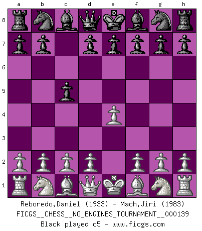 Last move : c5 2026 April 14 23:17:43 White clock - 39 days 21:46:27 Black clock - 39 days 14:21:25 [Event "FICGS__CHESS__NO_ENGINES_TOURNAMENT__000139"] [Site "FICGS"] [Date "2026.04.14"] [Round "1"] [White "Reboredo,Daniel"] [Black "Mach,Jiri"] [Result "*"] [WhiteElo "1933"] [BlackElo "1983"] 1.e4 c5 2.* Follow this game move after move (download)Fischer Chess play was always razor-sharp, rational and brilliant. One of the best ever. (Dave Regis) Es ist im Leben wie im Schachspiel. Wir entwerfen einen Plan, dieser bleibt jedoch bedingt durch das, was im Schachspiel dem Gegner, im Leben dem Schicksal zu tun belieben wird. (Arthur Schopenhauer) No volvere nunca a jugar contigo. Has insultado a mi amigo. - cuando un oponente se maldijo por una mala jugada (Miguel Najdorf) La vie est comme un jeu d'échecs : nous esquissons un plan, mais celui-ci est tributaire de ce que daignent faire l'adversaire aux échecs et le destin dans la vie. (Arthur Schopenhauer) The intuitive mind is a sacred gift; the rational mind is a faithful servant. We have created a society that honors the servant but has forgotten the gift. (Albert Einstein)