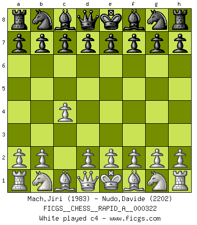 Last move : c4 2026 April 22 0:32:55 White clock - 30 days 23:57:05 Black clock - 29 days 16:57:19 [Event "FICGS__CHESS__RAPID_A__000322"] [Site "FICGS"] [Date "2026.04.22"] [Round "1"] [White "Mach,Jiri"] [Black "Nudo,Davide"] [Result "*"] [WhiteElo "1983"] [BlackElo "2202"] 1.c4 * Follow this game move after move (download)Different people feel differently about resigning. (Bobby Fischer) Es tut gut, die Entwicklungsperiode von, [...] demokratischem Geist durchdringen zu lassen. Wie undemokratisch wäre es doch beispielsweise, den einen Offizier große Spaziertouren vornehmen zu lassen, während die anderen zu Hause säßen und sich entsetzlich langweilten. (Aaron Nimzowitsch) Debes de llevar a tu oponente hacia un profundo y obscuro bosque donde 2+2=5, y el camino que conduce a la salida es suficientemente ancho para solamente uno. (Mikhail Tal) Il s'avisa de me proposer d'apprendre les échecs qu'il jouait un peu... me voilà forcené des échecs. J'achète un échiquier, je m'enferme dans ma chambre, j'y passe des jours et des nuits à vouloir apprendre par cur toutes les parties. (Jean-Jacques Rousseau, Confessions) The only difference between a tax man and a taxidermist is that the taxidermist leaves the skin. (Mark Twain)