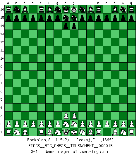 Last move : 0-1 2007 December 21 20:32:16 [Event "FICGS__BIG_CHESS__TOURNAMENT__000015"] [Site "FICGS"] [Date "2007.11.18"] [Round "1"] [White "Porkolab,Sandor"] [Black "Czekaj,Christophe"] [Result "0-1"] [WhiteElo "1942"] [BlackElo "1669"] 0-1 Follow this game move after move (download)The beauty of a move lies not in its' appearance but in the thought behind it. (Siegbert Tarrasch) Ich spiele 70 Eröffnungssysteme. (Viktor Kortschnoi) El Ajedrez lo es todo: arte, ciencia y deporte. (Anatoly Karpov) La tactique est l'élément le plus important du milieu de jeu. (Siegbert Tarrasch) What doesn't kill us makes us stronger. (Friedrich Nietzsche)