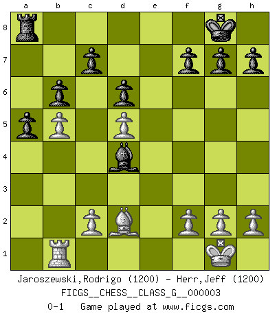 Last move : 0-1 2006 October 12 5:53:13 [Event "FICGS__CHESS__CLASS_G__000003"] [Site "FICGS"] [Date "2006.07.04"] [Round "1"] [White "Jaroszewski,Rodrigo"] [Black "Herr,Jeff"] [Result "0-1"] [WhiteElo "1200"] [BlackElo "1200"] 1.e4 e5 2.Nf3 Nc6 3.Bb5 Nf6 4.O-O d6 5.d4 exd4 6.Nxd4 Bd7 7.Re1 Be7 8.Nc3 Nxd4 9.Qxd4 O-O 10.Bxd7 Nxd7 11.Nd5 Re8 12.Qb4 Nb6 13.a4 Nxd5 14.exd5 b6 15.Bd2 a5 16.Qb5 Bf6 17.Rxe8 Qxe8 18.Re1 Qxb5 19.axb5 Bxb2 20.Rb1 Bd4 0-1 Ruy Lopez : Berlin defense, 4.O-O, d6 Kingside Castling by player White (move 4) Kingside Castling by player Black (move 9) Player Black won this chess game. Follow this game move after move (download)Nothing excites jaded Grandmasters more than a theoretical novelty. (Dominic Lawson) Versuche, dich von der Sklaverei der Eröffnungsvarianten zu befreien. Stattdessen soll man gewisse Typenpositionen erlernen, die man eingehend analysiert. (Aaron Nimzowitsch) Todos los jugadores de Ajedrez deberían tener un pasatiempo. (Savielly Tartakower) Assurément je connaissais par expérience le mystérieux attrait de ce jeu royal, le seul entre tous les jeux inventés par les hommes qui échappe souverainement à la tyrannie du hasard, le seul où l'on ne doive sa victoire qu'à son intelligence ou plutôt à une certaine forme d'intelligence. Mais n'est-ce pas déjà le limiter injurieusement que d'appeler les échecs un jeu ? N'est-ce pas une science, un art ou quelque chose qui, comme le cercueil de Mahomet entre ciel et terre, est suspendu entre l'un et l'autre, et qui réunit un nombre incroyable de contraires ? [...] C'est une pensée qui ne mène à rien, une mathématique qui n'établit rien, un art qui ne laisse pas d'uvre, une architecture sans matière; et il l'a prouvé néanmoins qu'il était plus durable, à sa manière, que les livres ou que tout autre monument, ce jeu unique qui appartient à tous les peuples et à tous les temps, et dont personne ne sait quel dieu en fit don à la terre pour tuer l'ennui, pour aiguiser l'esprit et stimuler l'âme. Où commence-t-il, où finit-il ? (Stefan Zweig) Crush them ! Make them suffer ! (General Grievous in Star Wars ep.3)