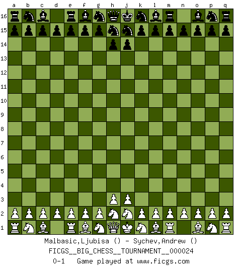Last move : 0-1 2008 June 24 23:14:38 [Event "FICGS__BIG_CHESS__TOURNAMENT__000024"] [Site "FICGS"] [Date "2008.06.13"] [Round "1"] [White "Malbasic,Ljubisa"] [Black "Sychev,Andrew"] [Result "0-1"] [WhiteElo ""] [BlackElo ""] 0-1 Follow this game move after move (download)I'm not a materialistic person, in that, I don't suffer the lack or loss of money. The absence of worldly goods I don't look back on. For Chess is a way I can be as materialistic as I want without having to sell my soul. (Jamie Walter Adams) Schach ist mein Leben, meine Leidenschaft, was ich gelernt habe und seit meinem 14. Lebensjahr profimässig praktiziere. Darauf zu verzichten, würde mir sehr schwer fallen. (Viktor Kortschnoi) Nos gusta pensar. (Gary Kasparov) Les échecs c'est le défi de l'alpiniste, toujours plus haut, prêt à tout pour monter à l'assaut du Roi ennemi. Les échecs, c'est de la musique en mouvement, un ballet majestueux pour les yeux. C'est de la poésie composée par les fantômes du passé qui au même titre que Rimbaud ou Verlaine méritent notre admiration. Les échecs, c'est de la peinture ou le moindre mouvement modifie le tableau pour en faire un Picasso ou un Van Gogh. Les échecs, c'est tout et rien, c'est la vie et la mort. Jjulie33 sur le forum de France-Echecs. After growing wildly for years, the field of computing appears to be reaching its infancy. (John Pierce)