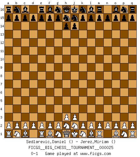 Last move : 0-1 2008 August 28 7:29:40 [Event "FICGS__BIG_CHESS__TOURNAMENT__000025"] [Site "FICGS"] [Date "2008.07.29"] [Round "1"] [White "Sedlarevic,Daniel"] [Black "Jerez,Miriam"] [Result "0-1"] [WhiteElo ""] [BlackElo ""] 0-1 This big chess game has been lost on time (started : 2008.07.29 1:27:47) Follow this game move after move (download)I am the best player in the world and I am here to prove it. (Bobby Fischer) Herr Iljumschinow ist ein etwas merkwürdiger Geschäftsmann: Er arbeitet zusammen mit Leuten wie Muammar al-Gaddafi; früher ist das Saddam Hussein gewesen. (Joel Lautier) El Jaque al descubierto es el bombardero del tablero. (Reuben Fine) Une platitude souvent récitée à propos des Echecs est qu'une des choses les plus difficiles à réaliser est de gagner une position gagnante. Cela ne manque pas de sens mais, pour ma part, j'ai toujours trouvé plus difficile de gagner une position perdante. (Tim Krabbe) Perfection is achieved, not when there is nothing more to add, but when there is nothing left to take away. (Antoine de Saint-Exupéry)