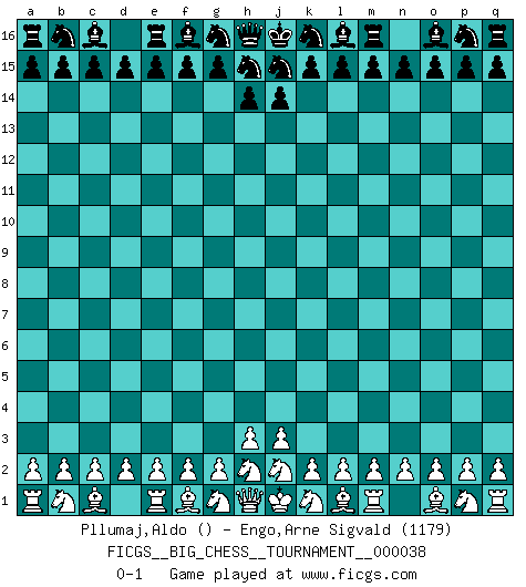 Last move : 0-1 2009 April 8 2:17:13 [Event "FICGS__BIG_CHESS__TOURNAMENT__000038"] [Site "FICGS"] [Date "2009.03.08"] [Round "1"] [White "Pllumaj,Aldo"] [Black "Engo,Arne Sigvald"] [Result "0-1"] [WhiteElo ""] [BlackElo "1179"] 0-1 This big chess game has been lost on time (started : 2009.03.08 22:29:29) Follow this game move after move (download)You may learn much more from a game you lose than from a game you win. You will have to lose hundreds of games before becoming a good player. (Jose Raul Capablanca) Mit Schach schule ich mein Gefühl für Geometrie, was für Tennis und Schach gleichermaßen wichtig ist. (Boris Becker) Nos gusta pensar. (Gary Kasparov) On n'a jamais que l'âge auquel on a commence à jouer aux échecs car après on cesse de vieillir. (Capablanca) Are you threatening me, Master Jedi ? (Chancellor Palpatine in Star Wars ep.3)