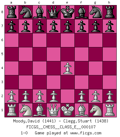 Last move : 1-0 2009 July 4 21:47:31 [Event "FICGS__CHESS__CLASS_E__000107"] [Site "FICGS"] [Date "2009.05.25"] [Round "1"] [White "Moody,David"] [Black "Clegg,Stuart"] [Result "1-0"] [WhiteElo "1441"] [BlackElo "1438"] 1.e4 1-0 This chess game has been lost on time (started : 2009.05.25 17:45:22) King's pawn Opening Player White won this chess game. Follow this game move after move (download)Half the variations which are calculated in a tournament game turn out to be completely superfluous. Unfortunately, no one knows in advance which half. (Jan Tinman) Ich könnte leicht behaupten: Ja,ja, Leonid Breschnew wollte nicht, daß ich Weltmeister werde. In der Tat war die Sache komplizierter. (Viktor Kortschnoi) El Ajedrez es tan interesante por sí solo, que no es necesario un interés monetario para persuadir a una persona a que lo practique; por lo tanto, nunca se juega por dinero. (Benjamin Franklin) Assurément je connaissais par expérience le mystérieux attrait de ce jeu royal, le seul entre tous les jeux inventés par les hommes qui échappe souverainement à la tyrannie du hasard, le seul où l'on ne doive sa victoire qu'à son intelligence ou plutôt à une certaine forme d'intelligence. Mais n'est-ce pas déjà le limiter injurieusement que d'appeler les échecs un jeu ? N'est-ce pas une science, un art ou quelque chose qui, comme le cercueil de Mahomet entre ciel et terre, est suspendu entre l'un et l'autre, et qui réunit un nombre incroyable de contraires ? [...] C'est une pensée qui ne mène à rien, une mathématique qui n'établit rien, un art qui ne laisse pas d'uvre, une architecture sans matière; et il l'a prouvé néanmoins qu'il était plus durable, à sa manière, que les livres ou que tout autre monument, ce jeu unique qui appartient à tous les peuples et à tous les temps, et dont personne ne sait quel dieu en fit don à la terre pour tuer l'ennui, pour aiguiser l'esprit et stimuler l'âme. Où commence-t-il, où finit-il ? (Stefan Zweig) Information on the Internet is subject to the same rules and regulations as conversation at a bar. (George Lundberg)