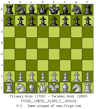 Last move : 0-1 2009 September 30 20:33:28 [Event "FICGS__CHESS__CLASS_C__000122"] [Site "FICGS"] [Date "2009.08.21"] [Round "1"] [White "Pllumaj,Aldo"] [Black "Farahmi,Andi"] [Result "0-1"] [WhiteElo "1700"] [BlackElo "1800"] 0-1 This chess game has been lost on time (started : 2009.08.21 20:20:6) Player Black won this chess game. Follow this game move after move (download)There is no remorse like the remorse of Chess. (H. G. Wells) Du kannst im Schach nur gut werden, wenn du das Spiel liebst. (Robert James Fischer) Evita las multitudes. Haz independientemente tu propio razonamiento. Trata de ser el jugador de Ajedrez, no la pieza de Ajedrez. (Ralph Charell) À la honte des hommes, on sait que les lois du jeu sont les seules qui soient partout justes, claires, inviolables et exécutées. Pourquoi l'Indien qui a donné les règles du jeu d'échecs est-il obéi de bon gré dans toute la terre, et que les décrétales des papes, par exemple, sont aujourd'hui un objet d'horreur et de mépris ? C'est que l'inventeur des échecs combina tout avec justesse pour la satisfaction des joueurs, et que les papes, dans leurs décrétales, n'eurent en vue que leur seul avantage. L'Indien voulut exercer également l'esprit des hommes et leur donner du plaisir; les papes ont voulu abrutir l'esprit des hommes. Voltaire (Dictionnaire philosophique / Garnier 1967) Tree pose grows confidence. It roots me to this world. (Terri Guillemets)