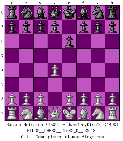 Last move : 0-1 2009 November 11 21:3:33 [Event "FICGS__CHESS__CLASS_D__000134"] [Site "FICGS"] [Date "2009.11.02"] [Round "1"] [White "Basson,Heinrich"] [Black "Quanter,Kirsty"] [Result "0-1"] [WhiteElo "1600"] [BlackElo "1400"] 1.d4 e6 0-1 Queen's pawn Player Black won this chess game. Follow this game move after move (download)We cannot resist the fascination of sacrifice, since a passion for sacrifices is part of a Chessplayer's nature. (Rudolf Spielman) Viele Opfer benötigen überhaupt keine konkrete Berechnung. Es genügt sich die entstehende Position kurz vorzustellen, um uns davon zu überzeugen, dass das Opfer korrekt ist. (Mikhail Nekhemyevich Tal) El Ajedrez expande y enriquece tu mente. (Saudin Robovic) À la honte des hommes, on sait que les lois du jeu sont les seules qui soient partout justes, claires, inviolables et exécutées. Pourquoi l'Indien qui a donné les règles du jeu d'échecs est-il obéi de bon gré dans toute la terre, et que les décrétales des papes, par exemple, sont aujourd'hui un objet d'horreur et de mépris ? C'est que l'inventeur des échecs combina tout avec justesse pour la satisfaction des joueurs, et que les papes, dans leurs décrétales, n'eurent en vue que leur seul avantage. L'Indien voulut exercer également l'esprit des hommes et leur donner du plaisir; les papes ont voulu abrutir l'esprit des hommes. Voltaire (Dictionnaire philosophique / Garnier 1967) Drag your thoughts away from your troubles... by the ears, by the heels, or any other way you can manage it. (Mark Twain)