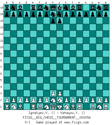 Last move : 0-1 2009 December 15 13:46:16 [Event "FICGS__BIG_CHESS__TOURNAMENT__000056"] [Site "FICGS"] [Date "2009.12.15"] [Round "1"] [White "Ignatyev,Vladimir"] [Black "Kehayov,Yulian"] [Result "0-1"] [WhiteElo ""] [BlackElo ""] 0-1 Follow this game move after move (download)Chess is the gymnasium of the mind. (Blaise Pascal) Kann Schach nicht schließlich das Nationalspiel der Deutschen werden? Und welche weiteren Ausblicke bieten sich dann dar! Welche Hebung des allgemeinen Kultur-Niveaus, ja der Moral, wenn das Schachbrett den Kartentisch verdrängen würde! Wahrlich, ein Ziel, des Schweißes der Edlen wert! (Siegbert Tarrasch) Alekhine es un poeta que crea un trabajo de arte de algo que raramente inspiraría a otra persona a mandar una tarjeta postal. (Max Euwe) Il s'avisa de me proposer d'apprendre les échecs qu'il jouait un peu... me voilà forcené des échecs. J'achète un échiquier, je m'enferme dans ma chambre, j'y passe des jours et des nuits à vouloir apprendre par cur toutes les parties. (Jean-Jacques Rousseau, Confessions) The only difference between a tax man and a taxidermist is that the taxidermist leaves the skin. (Mark Twain)