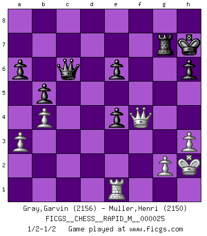 Last move : 1/2-1/2 2010 April 16 9:19:25 [Event "FICGS__CHESS__RAPID_M__000025"] [Site "FICGS"] [Date "2010.02.04"] [Round "1"] [White "Gray,Garvin"] [Black "Muller,Henri"] [Result "1/2-1/2"] [WhiteElo "2156"] [BlackElo "2150"] 1.e4 c5 2.Nf3 d6 3.d4 cxd4 4.Nxd4 Nf6 5.Nc3 a6 6.Bc4 e6 7.Be3 Nc6 8.O-O Qc7 9.Bd3 Be7 10.f4 O-O 11.Qf3 Bd7 12.a3 b5 13.Nb3 Rfe8 14.Rfd1 h6 15.Qg3 Kh8 16.Rd2 Rac8 17.Rf1 Qb8 18.Kh1 Rg8 19.Nd4 Rgf8 20.R2d1 Qc7 21.Be2 Nxd4 22.Bxd4 Bc6 23.Bf3 Rcd8 24.b4 Qb7 25.Rd3 Rc8 26.Re1 Rfd8 27.h3 Qc7 28.Qf2 Qb7 29.e5 dxe5 30.fxe5 Bxf3 31.exf6 Bxf6 32.Bxf6 Rxd3 33.cxd3 gxf6 34.Ne4 Bxe4 35.Qxf6+ Kh7 36.dxe4 Rg8 37.Qf4 Rg7 38.Rc1 f5 39.Kg1 fxe4 40.Re1 Qc6 41.Kh2 1/2-1/2 Sicilian : Najdorf, Lipnitzky attack Kingside Castling by player White (move 8) Kingside Castling by player Black (move 10) This chess game ended in a draw. Follow this game move after move (download)There's never before been a Chess player with such a thorough knowledge of the intricacies of the game and such an absolutely indomitable will to win. I think Bobby is the greatest player that ever lived. (Lisa Lane) Herr Iljumschinow ist ein etwas merkwürdiger Geschäftsmann: Er arbeitet zusammen mit Leuten wie Muammar al-Gaddafi; früher ist das Saddam Hussein gewesen. (Joel Lautier) El Ajedrez por encima de todo... ¡es una pelea!. (Emanuel Lasker) Un footballeur joue avec ses pieds, parfois avec sa tête. Un joueur d'échecs ne joue qu'avec sa tête. Et quand il ne joue plus, il meurt. (Jacob Murray) First of all, we have to go back to the classical time control. (Anatoly Karpov)