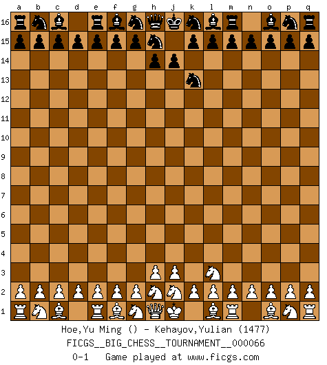 Last move : 0-1 2010 June 5 19:3:12 [Event "FICGS__BIG_CHESS__TOURNAMENT__000066"] [Site "FICGS"] [Date "2010.06.03"] [Round "1"] [White "Hoe,Yu Ming"] [Black "Kehayov,Yulian"] [Result "0-1"] [WhiteElo ""] [BlackElo "1477"] 1.k1-l3 j15-k13 0-1 Follow this game move after move (download)If Chess is a science, it's a most inexact one. If Chess is an art, it is too exacting to be seen as one. If Chess is a sport, it's too esoteric. If Chess is a game, it's too demanding to be just a game. If Chess is a mistress, she's a demanding one. If Chess is a passion, it's a rewarding one. If Chess is life, it's a sad one. (Unknown) Wenn Capablanka heute auf der Schachbühne erscheinen würde, hätte er ein halbes Jahr gebraucht um sich die Schachtheorie anzueignen. Und dann hätte er alles und jeden besiegt. (Mikhail Moiseyevich Botvinik) No puedes jugar al Ajedrez si eres de corazón noble. (Proverbio Francés) Aidez vos pièces, elles vous aideront. (Paul Morphy) Have no fear of perfection - you'll never reach it. (Salvador Dali)