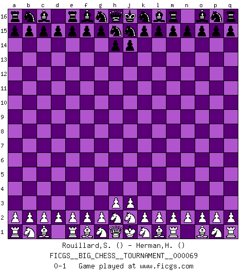 Last move : 0-1 2010 July 23 6:13:36 [Event "FICGS__BIG_CHESS__TOURNAMENT__000069"] [Site "FICGS"] [Date "2010.07.22"] [Round "1"] [White "Rouillard,Stephane"] [Black "Herman,Herdiansyah"] [Result "0-1"] [WhiteElo ""] [BlackElo ""] 0-1 Follow this game move after move (download)Everything is in a state of flux, and this includes the world of Chess. (Mikhail Botvinnik) Die jungen Leute sollen verstehen, dass sie noch etwas von mir lernen können und müssen. (Viktor Kortschnoi) Robert Fischer es la ley hacia si mismo. (Larry Evans) Tout change constamment, y compris dans le monde des Echecs. (Botvinnik) If everyone is thinking alike, then somebody isn't thinking. (US General George S. Patton)