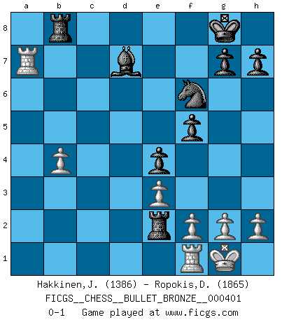 FICGS__CHESS__BULLET_BRONZE__000401 (type : rated knockout, time : 0 day, 00:05:00, increment : 0 day, 00:00:15 / move)