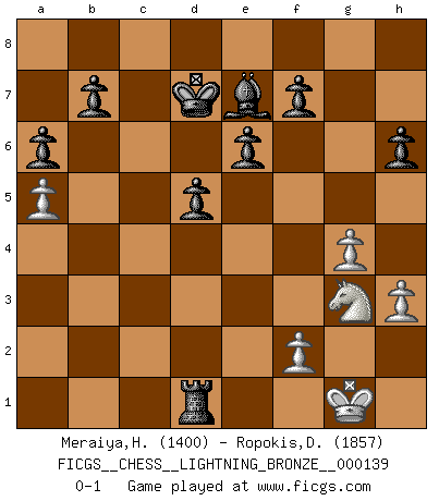 FICGS__CHESS__LIGHTNING_BRONZE__000139 (type : rated knockout, time : 0 day, 00:20:00, increment : 0 day, 00:00:30 / move)