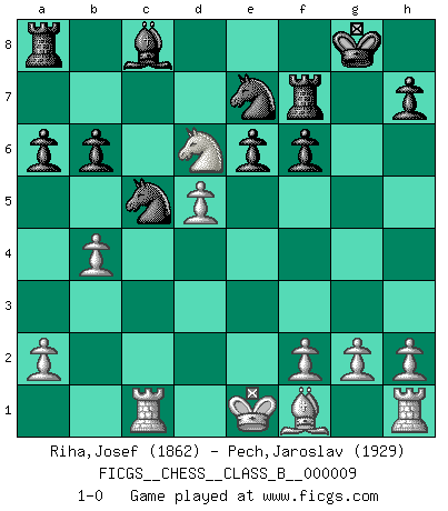 Last move : 1-0 2007 February 16 4:31:1 [Event "FICGS__CHESS__CLASS_B__000009"] [Site "FICGS"] [Date "2006.11.25"] [Round "1"] [White "Riha,Josef"] [Black "Pech,Jaroslav"] [Result "1-0"] [WhiteElo "1862"] [BlackElo "1929"] 1.e4 e6 2.d4 d5 3.Nc3 Bb4 4.e5 c5 5.Bd2 Ne7 6.Nb5 Bxd2+ 7.Qxd2 O-O 8.dxc5 Nd7 9.Qc3 a6 10.Nd6 Qc7 11.Nf3 Qxc5 12.Qxc5 Nxc5 13.c4 Rd8 14.Ng5 f6 15.Ngf7 Rf8 16.exf6 gxf6 17.cxd5 Rxf7 18.Rc1 b6 19.b4 1-0 This chess game has been lost on time (started : 2006.11.25 17:11:6) French : Winawer, Advance, Bogolyubov variation Kingside Castling by player Black (move 7) Player White won this chess game. Follow this game move after move (download)Bobby Fischer is the greatest Chess genius of all time ! (Alexander Kotov) Charakterschwächen offenbaren sich normalerweise während einer Schachpartie. (Garry Kasparov) Me siento como si fuera una pieza en una partida de Ajedrez, cuando mi oponente me indica: esa pieza no puede ser movida. (Soren Kierkegaard) Ce qui caractérise les parties de combat, c'est que si le défenseur a constamment de difficiles problèmes à résoudre, l'attaquant doit chercher sans relâche de nouvelles possibilités d'attaque. (Koblentz) The various flowers seem good to different people. (Chinese proverb)