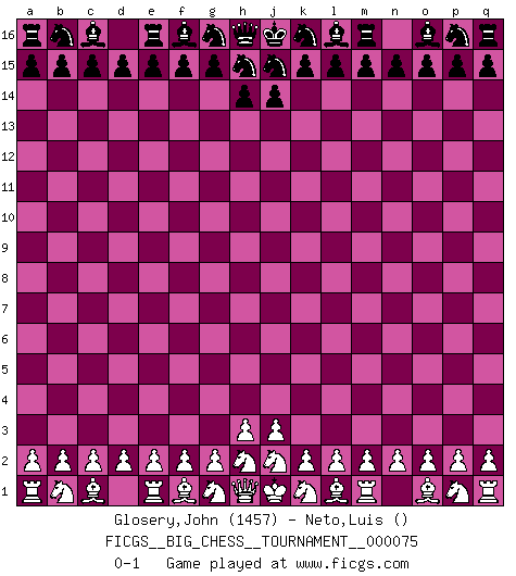 Last move : 0-1 2011 January 27 2:43:13 [Event "FICGS__BIG_CHESS__TOURNAMENT__000075"] [Site "FICGS"] [Date "2011.01.24"] [Round "1"] [White "Glosery,John"] [Black "Neto,Luis"] [Result "0-1"] [WhiteElo "1457"] [BlackElo ""] 0-1 Follow this game move after move (download)If one piece is badly posted, the whole game is bad. (Tarrasch) Frage: Was machen Sie mit den Preisen? Anwort: Ich habe Angst, dass meine Freundin davon neue Kleider kauft. (Loek van Wely) Jugadores de primera clase pierden en contra de jugadores de segunda clase porque los jugadores de segunda clase a veces juegan una partida de primer clase. (Siegbert Tarrasch) Les Echecs sont et restent toujours un combat, un combat intégral comme la boxe, la lutte ou un autre sport, et où il doit y avoir un vainqueur et un vaincu. (Joseph Emil Diemer) Depression is just anger without enthusiasm. (Unknown)