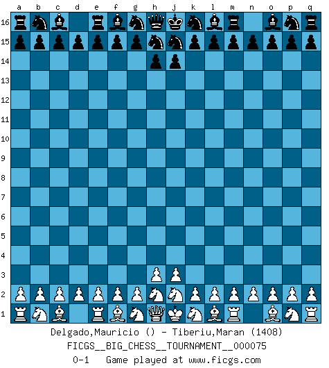 Last move : 0-1 2011 February 24 11:5:26 [Event "FICGS__BIG_CHESS__TOURNAMENT__000075"] [Site "FICGS"] [Date "2011.01.24"] [Round "1"] [White "Delgado,Mauricio"] [Black "Tiberiu,Maran"] [Result "0-1"] [WhiteElo ""] [BlackElo "1408"] 0-1 This big chess game has been lost on time (started : 2011.01.24 23:47:27) Follow this game move after move (download)Chess is so inspiring that I do not believe a good player is capable of having an evil thought during the game. (Wilhelm Steinitz) Der Knackpunkt bei der Konzentration ist, daß wir nur durch sie etwas Neues und Ungewöhnliches am Schachbrett finden können. Sie ist der einzige Weg durch neue neue Ideen eine Überraschung zu bereiten. (Garry Kasparov) Si tu oponente te ofrece un empate, trata de averiguar porque piensa él que esta en una posición peor. (Nigel Short) La victoire dans une partie d'Echecs appartient la plupart du temps à celui qui voit un peu plus loin que l'adversaire. (Lasker) Is not life a hundred times too short to bore ourselves ? (Friedrich Nietzsche)