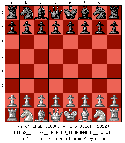 Last move : 0-1 2011 August 15 21:30:24 [Event "FICGS__CHESS__UNRATED_TOURNAMENT__000018"] [Site "FICGS"] [Date "2011.07.06"] [Round "1"] [White "Karot,Ehab"] [Black "Riha,Josef"] [Result "0-1"] [WhiteElo "1800"] [BlackElo "2022"] 0-1 This chess game has been lost on time (started : 2011.07.06 17:6:34) Player Black won this chess game. Follow this game move after move (download)A player surprised is half beaten. (Proverb) Obwohl ich vom Stil her kaum zu den Priestern der Schachkunst gezählt werde, halte ich Schach doch für eine Kunst. (Tigran Petrosjan) Cuando la partida de Ajedrez termina, el Peón y el Rey regresan a la misma caja. (Irish saying) L'action d'une oeuvre littéraire se déroule sur un champ de bataille. Les masques et les types du drame moderne correspondent aux pièces du jeu d'échecs. L'intrigue correspond aux coups et aux gambits, c'est à dire aux techniques du jeu telles qu'utilisées et interprétées par les joueurs. Les tactiques et les péripéties [mouvements] correspondent aux coups exécutés par l'adversaire. (Viktor Shklovsky) The beginning is the most important part of the work. (Plato)