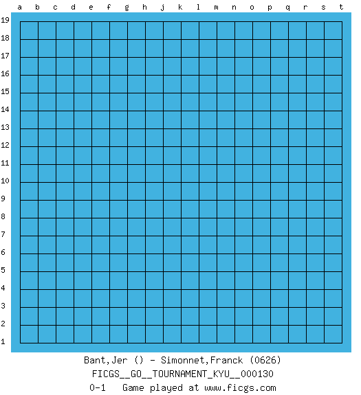 Last move : 0-1 2011 December 7 15:32:58 [Event "FICGS__GO__TOURNAMENT_KYU__000130"] [Site "FICGS"] [Date "2011.11.07"] [Round "1"] [Black "Bant,Jer"] [White "Simonnet,Franck"] [Result "0-1"] [Rating 2 "0626"] 0-1 This go game has been lost on time (started : 2011.11.07 15:30:48) Here are the names of the openings (joseki) played in the four corners : Player White won this Go (weiqi, baduk) game. Follow this game move after move (download)Do not fear furikawari. (Anonymous) Bobby never cared about money, though. His only desire was to prove that his choices were correct: He wanted chess to be important because he was a chess player, and he wanted to be important. Bobby knew money was important, but he didn't have a clue why, outside of clothes and status. The only way he could accomplish what he wanted was to fight for a lot of money. Once he got it, he gave it away. He did not know how to spend it. And once he'd become champion, after, essentially, sacrificing his life for it, he didn't know how to spend his time. (Bob Wade)