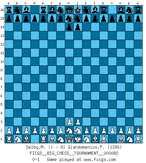 Last move : 0-1 2012 January 18 18:26:41 [Event "FICGS__BIG_CHESS__TOURNAMENT__000082"] [Site "FICGS"] [Date "2011.12.19"] [Round "1"] [White "Selby,Martin"] [Black "Di Giandomenico,Pierino"] [Result "0-1"] [WhiteElo ""] [BlackElo "1336"] 0-1 This big chess game has been lost on time (started : 2011.12.19 14:36:8) Follow this game move after move (download)When you see a good move, look for a better one. (Emanuel Lasker) Versuche, dich von der Sklaverei der Eröffnungsvarianten zu befreien. Stattdessen soll man gewisse Typenpositionen erlernen, die man eingehend analysiert. (Aaron Nimzowitsch) Los Peones son el alma de una partida de Ajedrez. (Francois Andre Danican Philidor) Avant la finale, les dieux ont créé le milieu de partie. (Tarrasch) Heh, heh, heh. Time to abandon ship. (General Grievous in Star Wars ep.3)