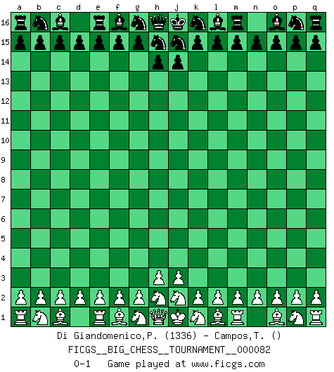 Last move : 0-1 2011 December 19 14:45:28 [Event "FICGS__BIG_CHESS__TOURNAMENT__000082"] [Site "FICGS"] [Date "2011.12.19"] [Round "1"] [White "Di Giandomenico,Pierino"] [Black "Campos,Tiago"] [Result "0-1"] [WhiteElo "1336"] [BlackElo ""] 0-1 Follow this game move after move (download)Human affairs are like a Chess game: only those who do not take it seriously can be called good players. (Hung Tzu Ch'eng) Es hat in meinem Leben Zeiten gegeben, in denen das Schachspiel, wenn nicht zum Lebenszweck, so doch zu einem regelrechten Lebensersatz geworden ist. Man fühlt sich in solchen Zeiten nicht so, als besäße man eine göttliche Gabe, sondern eher so, als sei man von ihr besessen. (Garry Kasparov) Una compensación adecuada por un sacrificio es tener una combinación sólida que conduce a una posición ganadora; una compensación adecuada por una metida de pata es dejar a tu oponente arrebatar una derrota de las fauces de la victoria. (Bruce A. Moon) La tactique est l'élément le plus important du milieu de jeu. (Siegbert Tarrasch) I don't know, I don't care, and it doesn't make any difference. (Albert Einstein)