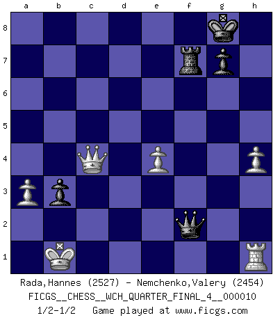 FICGS__CHESS__WCH_QUARTER_FINAL_4__000010 (type : rated knockout, time : 30 days, increment : 1 day / move)