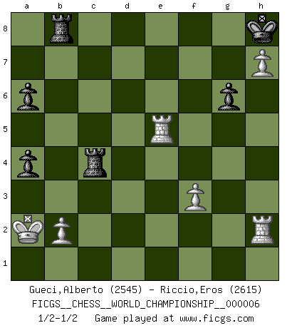 FICGS__CHESS__WORLD_CHAMPIONSHIP__000006 (type : rated knockout, time : 30 days, increment : 1 day / move)