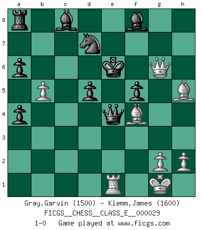 Last move : 1-0 2007 January 23 5:22:4 [Event "FICGS__CHESS__CLASS_E__000029"] [Site "FICGS"] [Date "2007.01.13"] [Round "1"] [White "Gray,Garvin"] [Black "Klemm,James"] [Result "1-0"] [WhiteElo "1500"] [BlackElo "1600"] 1.e4 e6 2.d4 d5 3.Nc3 Nf6 4.e5 Nfd7 5.f4 c5 6.Nf3 Nc6 7.Be3 g6 8.Be2 h5 9.O-O a6 10.dxc5 Nxc5 11.Nd4 Qc7 12.Nxc6 Qxc6 13.Qd4 b5 14.b4 Nd7 15.a4 bxa4 16.b5 Qc7 17.Nxd5 exd5 18.e6 fxe6 19.Qxh8 Kf7 20.f5 exf5 21.Rxf5+ gxf5 22.Bxh5+ Ke6 23.Qg8+ Ke5 24.Re1 Qxc2 25.Qg3+ Ke6 26.Bf4 Qe4 27.Qg6+ 1-0 French : Steinitz, Boleslavsky variation Kingside Castling by player White (move 9) Player White won this chess game. Follow this game move after move (download)Becoming successful at Chess allows you to discover your own personality. That's what I want for the kids I teach. (Saudin Robovic) Matt entspricht nicht immer den Tatsachen. (Savielly Grigorievitsch Tartakower) Una clavada es mas poderosa que una espada. (Fred Reinfeld) Botvinnik disait en comparant les échecs à la musique: Il existe une science dont le but est l'étude de l'acoustique et des sons. Mais il y a aussi un art qui se sert de l'océan des sons : c'est la musique. De toute évidence, il en est de même pour la pensée. La logique est l'étude des lois de la réflexion et les échecs reflètent, en tant qu'art, le côté logique de la réflexion, sous la forme d'images artistiques... Extrait de Fischer - Spassky, Reykjavik 1972 par Alexander & F. Wyndham (Ed. Solar), p 37. The hypothalamus is one of the most important parts of the brain, involved in many kinds of motivation, among other functions. The hypothalamus controls the 'Four Fs: Fighting, Fleeing, Feeding and Mating. (Unknown author)