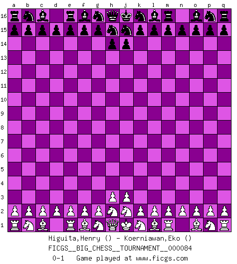 Last move : 0-1 2012 May 1 18:26:11 [Event "FICGS__BIG_CHESS__TOURNAMENT__000084"] [Site "FICGS"] [Date "2012.04.20"] [Round "1"] [White "Higuita,Henry"] [Black "Koerniawan,Eko"] [Result "0-1"] [WhiteElo ""] [BlackElo ""] 0-1 Follow this game move after move (download)Botvinnik tried to take the mystery out of Chess, always relating it to situations in ordinary life. He used to call Chess a typical inexact problem similar to those which people are always having to solve in everyday life. (Garry Kasparov) Ich könnte leicht behaupten: Ja,ja, Leonid Breschnew wollte nicht, daß ich Weltmeister werde. In der Tat war die Sache komplizierter. (Viktor Kortschnoi) La pasion por jugar al Ajedrez es una de las mas inexplicables en el mundo. (H.G. Wells) La vie et les Echecs sont tous les deux une lutte constante. (Lasker) May the force be with you. (Han Solo in Star Wars ep.4)