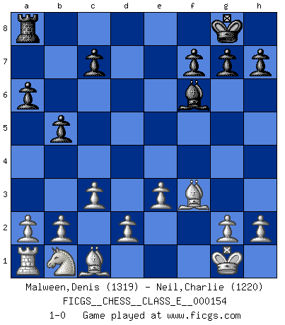 Last move : 1-0 2012 November 7 23:1:53 [Event "FICGS__CHESS__CLASS_E__000154"] [Site "FICGS"] [Date "2012.08.15"] [Round "1"] [White "Malween,Denis"] [Black "Neil,Charlie"] [Result "1-0"] [WhiteElo "1319"] [BlackElo "1220"] 1.e4 e5 2.Nf3 Nc6 3.Bb5 a6 4.Ba4 Nf6 5.O-O b5 6.Bb3 Be7 7.Re1 O-O 8.c3 d5 9.exd5 Nxd5 10.Nxe5 Bf6 11.Nxc6 Qd6 12.Qf3 Qxc6 13.Bxd5 Re8 14.Re3 Rxe3 15.fxe3 Bg4 16.Bxc6 Bxf3 17.Bxf3 1-0 Ruy Lopez : 5.O-O Kingside Castling by player White (move 5) Kingside Castling by player Black (move 7) Player White won this chess game. Follow this game move after move (download)The Pawns are the soul of the game. (Francois Andre Danican Philidor) Ich rechne überhaupt nicht voraus. Ich gewinne auch so. (Robert James Fischer) El Ajedrez es un terrible juego. Si no controlas el centro, tu oponente tiene una posición mas holgada. Si tienes control del centro, ¡entonces realmente tu tienes algo de que preocuparte!. (Siegbert Tarrasch) L'ordinateur a tué l'originalité. Il n'y a plus guère d'aventures sur l'échiquier. (Jacob Murray) Philosophers use a language that is already deformed as though by shoes that are too tight. (Ludwig Wittgenstein)