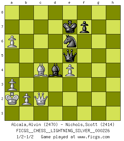 FICGS__CHESS__LIGHTNING_SILVER__000226 (type : rated knockout, time : 0 day, 00:20:00, increment : 0 day, 00:00:30 / move)