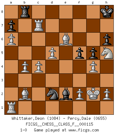 Last move : 1-0 2012 October 12 15:19:14 [Event "FICGS__CHESS__CLASS_F__000115"] [Site "FICGS"] [Date "2012.08.24"] [Round "1"] [White "Whittaker,Deon"] [Black "Percy,Dale"] [Result "1-0"] [WhiteElo "1084"] [BlackElo "0655"] 1.e4 e6 2.g3 Nf6 3.Bg2 d5 4.e5 Nfd7 5.d4 Nc6 6.Ne2 Be7 7.O-O O-O 8.Nbc3 Nb6 9.b3 h6 10.a4 Bb4 11.Bb2 Bd7 12.Qd3 Qg5 13.Nb5 Qf5 14.Qxf5 exf5 15.Nxc7 Rac8 16.Nxd5 Nxd5 17.Bxd5 Ne7 18.c3 Ba5 19.Bxb7 Rc7 20.Bf3 Ng6 21.b4 Bb6 22.Nf4 Ne7 23.a5 Rb7 24.Bxb7 Rb8 25.a6 Bb5 26.Rfe1 g5 27.Nh5 Ng6 28.e6 fxe6 29.Rxe6 Bc7 30.Nf6+ Kf7 31.Bd5 Bd3 32.Rc6 Kg7 33.g4 Be2 34.Nh5+ Kh7 35.Rxc7+ Kh8 36.c4 Nh4 37.Be6 Nf3+ 38.Kg2 Nd2 39.d5 1-0 French defense Kingside Castling by player White (move 7) Kingside Castling by player Black (move 7) Player White won this chess game. Follow this game move after move (download)Weak points or holes in the opponent's position must be occupied by pieces not Pawns. (Siegbert Tarrasch) Schach wird sich dank seiner hohen kulturellen Tradition immer durchsetzen. In näherer Zukunft womöglich sogar als Gegenreaktion auf die maßlose Reizüberflutung im Freizeit- und Spielbereich. (Garry Kasparov) El Ajedrez es como la guerra en un tablero. (Bobby Fischer) On peut tirer plus d'utilité d'une partie perdue que de 100 parties gagnées. (Capablanca) Methinks King Thibault should dub Marius Zubac a knight of the square board... I mean table, henceforth addressing him as Sir Marius, and bestow on him a suitable land from the kingdom of FICGS & marry him off to a worthy, fair maiden, lest he slice our heads with his mighty sword in his wrath. (Dinesh De Silva)