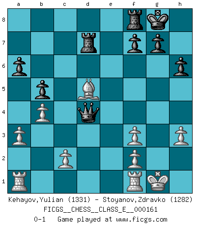 Last move : 0-1 2013 April 14 13:8:14 [Event "FICGS__CHESS__CLASS_E__000161"] [Site "FICGS"] [Date "2013.04.07"] [Round "1"] [White "Kehayov,Yulian"] [Black "Stoyanov,Zdravko"] [Result "0-1"] [WhiteElo "1331"] [BlackElo "1282"] 1.e4 c5 2.d4 cxd4 3.Qxd4 e6 4.Nf3 Nc6 5.Qd1 a6 6.Nc3 h6 7.a3 Nf6 8.Bd3 Be7 9.O-O b5 10.b4 O-O 11.h3 e5 12.Bb2 d5 13.exd5 Nxd5 14.Nxd5 Bd6 15.Nc3 Bb7 16.Be4 Qc7 17.Nd5 Qd8 18.Bxe5 Bxe5 19.Nxe5 Nxe5 20.Nf6+ Qxf6 21.Bxb7 Ra7 22.Bd5 Rd7 23.Qd4 Nf3+ 24.gxf3 Qxd4 0-1 Sicilian : Smith-Morra gambit Kingside Castling by player White (move 9) Kingside Castling by player Black (move 10) Player Black won this chess game. Follow this game move after move (download)It's always better to sacrifice your opponent's men. (Savielly Tartakover) Es gibt zwei Arten von Opfern: Korrekte und meine. (Mikhail Nekhemyevich Tal) Es el objetivo de la escuela moderna no tratar cada posición de acuerdo a una regla general, sino de acuerdo al principio inherente en la posición. (Richard Reti) Il (Jacob Murray) ne joue pas pour le bon coup, mais pour le meilleur. (Eloi Relange) We need strong personalities and only one world champion to attract sponsors. (Anatoly Karpov)