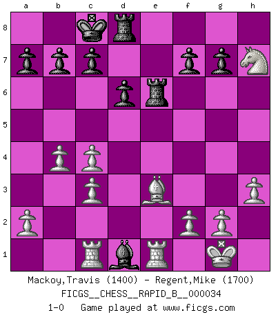 Last move : 1-0 2007 April 28 1:26:44 [Event "FICGS__CHESS__RAPID_B__000034"] [Site "FICGS"] [Date "2007.01.31"] [Round "1"] [White "Mackoy,Travis"] [Black "Regent,Mike"] [Result "1-0"] [WhiteElo "1400"] [BlackElo "1700"] 1.e4 e5 2.Nf3 Nf6 3.Nxe5 d6 4.Nf3 Nxe4 5.c4 Nc6 6.Nc3 Nxc3 7.dxc3 Bg4 8.Be2 Be7 9.O-O Qd7 10.Re1 O-O-O 11.h3 Bh5 12.Be3 Rhe8 13.b4 Bf6 14.Rc1 Ne5 15.Nxe5 Bxe2 16.Nxd7 Bxd1 17.Nxf6 Re6 18.Nxh7 1-0 Petrov : Kaufmann attack Kingside Castling by player White (move 9) Queenside Castling by player Black (move 10) Player White won this chess game. Follow this game move after move (download)Without error there can be no brilliancy. (Emanuel Lasker) Ich weiss nicht was Gott gegen mich auf 1.e4 antworten würde. (Robert James Fischer) Bobby es el jugador de Ajedrez mas fino que este país jamás haya producido. Su memoria para las movidas, su brillantez en soñar combinaciones y su feróz determinación por la victoria son algo extraño. (John Collins) Si le désir cupide (et stupide) de gagner est une inépuisable source de souffrance, une combinaison brillante sur l'échiquier est une découverte : le coquelicot qui s'épanouit lorsque apparaît la Voie Lactée. (Arrabal) Luck never gives; it only lends. (Swedish proverb)