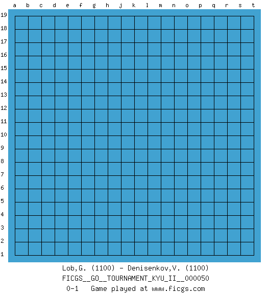 Last move : 0-1 2014 April 1 7:5:31 [Event "FICGS__GO__TOURNAMENT_KYU_II__000050"] [Site "FICGS"] [Date "2014.03.02"] [Round "1"] [Black "Lob,Guillaume"] [White "Denisenkov,Valentin"] [Result "0-1"] [Rating 1 "1100"] [Rating 2 "1100"] 0-1 This go game has been lost on time (started : 2014.03.02 5:18:45) Here are the names of the openings (joseki) played in the four corners : Player White won this Go (weiqi, baduk) game. Follow this game move after move (download)In opponents' sphere of influence, avoid sharp conflict, don't move too deep. (Otake Hideo, 9p) But they are useless. They can only give you answers. (Pablo Picasso, about computers)