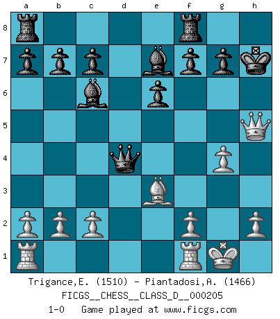 Last move : 1-0 2014 April 12 21:16:2 [Event "FICGS__CHESS__CLASS_D__000205"] [Site "FICGS"] [Date "2014.03.09"] [Round "1"] [White "Trigance,Emile"] [Black "Piantadosi,Angelo"] [Result "1-0"] [WhiteElo "1510"] [BlackElo "1466"] 1.e4 e6 2.d4 d5 3.Nd2 dxe4 4.Nxe4 Nd7 5.Nf3 Ngf6 6.Nxf6+ Nxf6 7.Bd3 Be7 8.O-O O-O 9.Ne5 Nd7 10.Qh5 h6 11.Nxd7 Bxd7 12.g4 Bc6 13.Bxh6 Qxd4 14.Bh7+ Kxh7 15.Be3 1-0 French : Tarrasch Kingside Castling by player White (move 8) Kingside Castling by player Black (move 8) Player White won this chess game. Follow this game move after move (download)Life is like a game of Chess, changing with each move. (Chinese proverb) Ich liebe den Moment, wenn ich das Ego meines Gegenüber breche. (Robert James Fischer) El juego de Fischer siempre fue nítido, racional y brillante. Uno de los mejores por siempre. (Dave Regis) Le moment que je préfère le plus dans une rencontre, c'est celui où je sens que la personnalité de l'adversaire se brise. (Robert Fischer) Be who you are, and say what you feel because those who mind don't matter, and those who matter don't mind. (Dr Seuss)