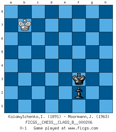 Last move : 0-1 2015 October 2 17:9:25 [Event "FICGS__CHESS__CLASS_B__000206"] [Site "FICGS"] [Date "2014.05.30"] [Round "1"] [White "Kolomytchenko,Igor"] [Black "Moormann,Joerg"] [Result "0-1"] [WhiteElo "1891"] [BlackElo "1963"] 1.d4 d5 2.c4 e6 3.Nc3 c6 4.Nf3 dxc4 5.a4 Bb4 6.e3 b5 7.Ne5 Nf6 8.Bd2 Bb7 9.axb5 Bxc3 10.Bxc3 cxb5 11.b3 a5 12.bxc4 b4 13.Bb2 O-O 14.Bd3 Nbd7 15.Nxd7 Qxd7 16.O-O Be4 17.Bxe4 Nxe4 18.Qd3 Nf6 19.Qb3 Qc6 20.Rfc1 Rfc8 21.f3 e5 22.Qa4 Qc7 23.h3 h6 24.Qb5 exd4 25.Bxd4 Nd7 26.Qd5 Nc5 27.Rcb1 Ne6 28.Rxb4 Rd8 29.Qe4 Nxd4 30.exd4 axb4 31.Rxa8 b3 32.Kf2 b2 33.c5 Rb8 34.Rxb8+ Qxb8 35.Qb1 Qb4 36.Ke2 Qc3 37.Kd1 Kf8 38.d5 Qxc5 39.Qxb2 Qg1+ 40.Kc2 Qxg2+ 41.Kc3 Qxf3+ 42.Kc4 Qf4+ 43.Kc5 Qc7+ 44.Kd4 Ke8 45.Qa1 g5 46.Qa8+ Ke7 47.Qa3+ Qd6 48.Qa7+ Kf6 49.Kc4 h5 50.Qd4+ Kg6 51.Qe4+ Kh6 52.Qf5 f6 53.Kb5 Kg7 54.h4 gxh4 55.Qxh5 Qg3 56.d6 Qxd6 57.Qxh4 Qd5+ 58.Kb6 Qf3 59.Qe1 f5 60.Qe7+ Kh6 61.Qf6+ Kh5 62.Qh8+ Kg4 63.Qg7+ Kh3 64.Qh6+ Kg2 65.Qg7+ Qg3 66.Qb7+ Kg1 67.Qd5 f4 68.Qd1+ Kg2 69.Qd5+ f3 70.Kb7 Kg1 71.Qd1+ Kh2 72.Qd2+ f2 73.Qh6+ Kg2 74.Qc6+ Qf3 75.Qxf3+ Kxf3 0-1 QGD : Semi-Slav, Noteboom variation Kingside Castling by player Black (move 13) Kingside Castling by player White (move 16) 10 pieces endgame at move 40 : White KQPPP , Black KQPPP WHITE : King + 1 Queen 3 Pawns BLACK : King + 1 Queen 3 Pawns 9 pieces endgame at move 41 : White KQPP , Black KQPPP WHITE : King + 1 Queen 2 Pawns BLACK : King + 1 Queen 3 Pawns 8 pieces endgame at move 54 : White KQP , Black KQPPP WHITE : King + 1 Queen 1 Pawn BLACK : King + 1 Queen 3 Pawns 7 pieces endgame at move 55 : White KQP , Black KQPP WHITE : King + 1 Queen 1 Pawn BLACK : King + 1 Queen 2 Pawns 6 pieces endgame at move 56 : White KQ , Black KQPP WHITE : King + 1 Queen BLACK : King + 1 Queen 2 Pawns 5 pieces endgame at move 57 : White KQ , Black KQP WHITE : King + 1 Queen BLACK : King + 1 Queen 1 Pawn 4 pieces endgame at move 75 : White KQ , Black KP WHITE : King + 1 Queen BLACK : King + 1 Pawn 3 pieces endgame at move 75 : White K , Black KP WHITE : King + BLACK : King + 1 Pawn Player Black won this chess game. Follow this game move after move (download)The most important feature of the Chess position is the activity of the pieces. This is absolutely fundamental in all phases of the game: Opening, Middlegame and especially Endgame. The primary constraint on a piece's activity is the Pawn structure. (Michael Stean) Der vorletzte Fehler gewinnt. (Savielly Grigorievitsch Tartakower) Haz el enroque temprano y seguido. (Rob Sillars) Le temps de noter son nom sur la feuille de partie, j'étais déjà en zeitnot ! D'un modeste amateur apparié lors de la première ronde d'un open contre le grand-maître Azmaïparashvili. Without deviation from the norm, progress is not possible. (Frank Zappa)