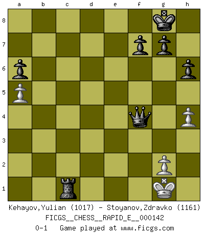 Last move : 0-1 2015 January 23 14:19:56 [Event "FICGS__CHESS__RAPID_E__000142"] [Site "FICGS"] [Date "2015.01.05"] [Round "1"] [White "Kehayov,Yulian"] [Black "Stoyanov,Zdravko"] [Result "0-1"] [WhiteElo "1017"] [BlackElo "1161"] 1.e4 c5 2.d4 cxd4 3.Qxd4 a6 4.Nf3 Nc6 5.Qd1 e6 6.Be2 h6 7.O-O d5 8.exd5 exd5 9.Nd4 Nxd4 10.Qxd4 Nf6 11.h3 Be7 12.Bf3 b6 13.Nc3 Bc5 14.Qe5+ Be7 15.Re1 Be6 16.Bf4 O-O 17.Rad1 b5 18.Nxd5 Nxd5 19.Bxd5 Bf6 20.Qe2 Bxd5 21.b3 Bc3 22.Bd2 Bxd2 23.Rxd2 Re8 24.Qd1 Qa5 25.Rxd5 Rxe1+ 26.Qxe1 Qxe1+ 27.Kh2 Qxf2 28.c4 bxc4 29.bxc4 Rc8 30.Rd6 Qf4+ 31.Kg1 Qxd6 32.a4 Rxc4 33.a5 Qf4 34.h4 Rc1+ 0-1 Sicilian : Smith-Morra gambit Kingside Castling by player White (move 7) Kingside Castling by player Black (move 16) Player Black won this chess game. Follow this game move after move (download)The older I grow, the more I value Pawns. (Keres) Die starken Figuren des Gegners muss man abtauschen. (José Raúl Capablanca) Fischer no está bajo la obligación de nadie. (Joseph Platz) Les pièces de l'échiquier étaient impitoyables. Elles le retenaient, elles l'absorbaient. Il y avait de l'horreur en cela, mais aussi une harmonie unique. Car, qu'y a-t-il dans le monde, à part les échecs ? (V. Nabokov) Perhaps the current trend of many chess professionals taking up the more lucrative pastime of poker is not a wholly negative one. It may not be too late for humans to relearn how to take risks in order to innovate and thereby maintain the advanced lifestyles we enjoy. And if it takes a poker-playing supercomputer to remind us that we can't enjoy the rewards without taking the risks, so be it. (The Chess Master and the Computer, by Garry Kasparov - 2010)