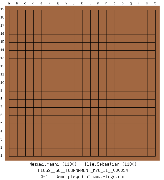 Last move : 0-1 2015 March 8 0:57:43 [Event "FICGS__GO__TOURNAMENT_KYU_II__000054"] [Site "FICGS"] [Date "2015.02.04"] [Round "1"] [Black "Nezumi,Mashi"] [White "Ilie,Sebastian"] [Result "0-1"] [Rating 1 "1100"] [Rating 2 "1100"] 0-1 This go game has been lost on time (started : 2015.02.04 17:11:23) Here are the names of the openings (joseki) played in the four corners : Player White won this Go (weiqi, baduk) game. Follow this game move after move (download)Each step in a ladder is worth 7 points. (Anonymous) Excelling at chess has long been considered a symbol of more general intelligence. That is an incorrect assumption in my view, as pleasant as it might be. But for the purposes of argument and investigation, chess is, in Russkin-Gutman's words, 'an unparalleled laboratory, since both the learning process and the degree of ability obtained can be objectified and quantified, providing an excellent comparative framework on which to use rigorous analytical techniques.' (The Chess Master and the Computer, by Garry Kasparov - 2010)