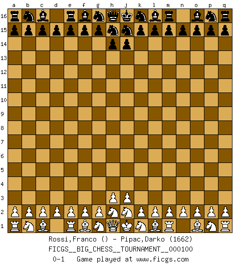 Last move : 0-1 2015 September 2 22:18:19 [Event "FICGS__BIG_CHESS__TOURNAMENT__000100"] [Site "FICGS"] [Date "2015.08.03"] [Round "1"] [White "Rossi,Franco"] [Black "Pipac,Darko"] [Result "0-1"] [WhiteElo ""] [BlackElo "1662"] 0-1 This big chess game has been lost on time (started : 2015.08.03 21:6:56) Follow this game move after move (download)Everything is in a state of flux, and this includes the world of Chess. (Mikhail Botvinnik) Bobby Fischer ist kein Vorbild für die heutige Jugend. (Viktor Kortschnoi) Fischer es una tragedia del Ajedrez Americano a la par con Morphy y Pillsbury. (Mig Greengard) Dieu déplace le joueur, et celui-ci la pièce. Quel Dieu derrière Dieu commence donc la trame ? Arturo Perez-Reverte (prix de littérature policière 1993). No, I am still playing. (Anatoly Karpov)