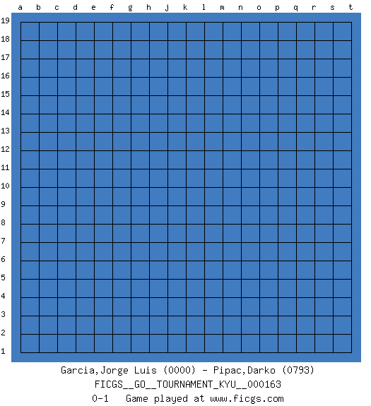 Last move : 0-1 2015 December 4 7:57:37 [Event "FICGS__GO__TOURNAMENT_KYU__000163"] [Site "FICGS"] [Date "2015.11.03"] [Round "1"] [Black "Garcia,Jorge Luis"] [White "Pipac,Darko"] [Result "0-1"] [Rating 1 "0000"] [Rating 2 "0793"] 0-1 This go game has been lost on time (started : 2015.11.03 21:50:53) Here are the names of the openings (joseki) played in the four corners : Player White won this Go (weiqi, baduk) game. Follow this game move after move (download)Keep sente in the opening. A premature attack loses sente. (Anonymous) I take risks, sometimes patients die, but not taking risks causes more patients to die. So I guess my biggest problem is I've been cursed with the ability to do the math. (Gregory House, House M.D.)