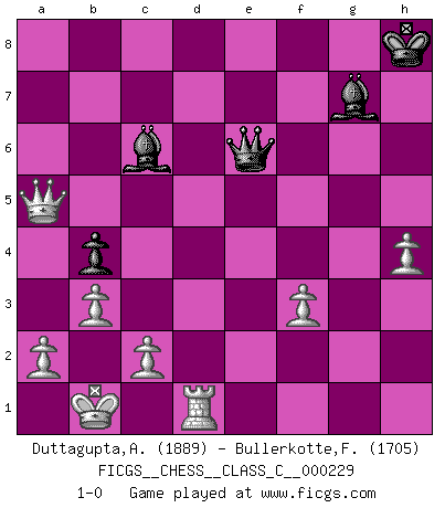 Last move : 1-0 2016 February 13 18:4:40 [Event "FICGS__CHESS__CLASS_C__000229"] [Site "FICGS"] [Date "2015.12.10"] [Round "1"] [White "Duttagupta,Aniruddha"] [Black "Bullerkotte,Frank"] [Result "1-0"] [WhiteElo "1889"] [BlackElo "1705"] 1.e4 c5 2.Nf3 d6 3.d4 cxd4 4.Nxd4 Nf6 5.Nc3 a6 6.Be3 e6 7.Qd2 b5 8.f3 Nbd7 9.g4 b4 10.Nce2 h6 11.O-O-O Qc7 12.h4 d5 13.Bh3 Nb6 14.b3 dxe4 15.Bf4 e3 16.Qd3 e5 17.Nc6 Nfd5 18.Nxe5 Be7 19.Ng6 Nxf4 20.Nexf4 fxg6 21.Qxg6+ Kf8 22.Qe4 e2 23.Ng6+ Kf7 24.Nxh8+ Kg8 25.Qxe2 Kxh8 26.g5 Bb7 27.Rhe1 Qf4+ 28.Kb1 Bf8 29.Be6 Bc6 30.Qd3 a5 31.gxh6 Qf6 32.Qe3 Re8 33.Qxb6 Rxe6 34.Rxe6 Qxe6 35.hxg7+ Bxg7 36.Qxa5 1-0 Sicilian : Najdorf, Byrne (English) attack Queenside Castling by player White (move 11) Player White won this chess game. Follow this game move after move (download)What would Chess be without silly mistakes ? (Kurt Richter) Die jungen Leute sollen verstehen, dass sie noch etwas von mir lernen können und müssen. (Viktor Kortschnoi) Estaba muy claro de que el punto vulnerable del Gran Maestro Americano (Bobby Fischer) radicaba en las posiciones de doble filo, colgantes, irracionales, donde el siempre falló en encontrar un triunfo aún en una posición de clara victoria. (Efim Geller) Vous n'êtes pas toujours obligé de jouer le meilleur coup. Un coup doit être actif, entreprenant, correct et beau ! (David Bronstein) A mistake is only a mistake if you let it happen twice. Otherwise it is a learning experience. (Daniel Parmet)