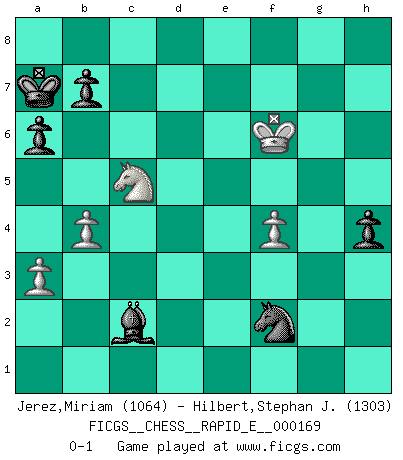 Last move : 0-1 2016 August 17 8:6:50 [Event "FICGS__CHESS__RAPID_E__000169"] [Site "FICGS"] [Date "2016.02.15"] [Round "1"] [White "Jerez,Miriam"] [Black "Hilbert,Stephan J."] [Result "0-1"] [WhiteElo "1064"] [BlackElo "1303"] 1.e4 d5 2.e5 Bf5 3.d4 e6 4.Nf3 c5 5.c4 Nc6 6.g3 cxd4 7.Nxd4 Nxd4 8.Qxd4 Qa5+ 9.Nc3 O-O-O 10.cxd5 Rxd5 11.Qc4+ Rc5 12.Qa4 Rxe5+ 13.Be2 Qxa4 14.Nxa4 Bg4 15.Nc3 Bb4 16.Be3 Bh3 17.O-O-O Nf6 18.Nb5 Bc5 19.Kb1 a6 20.Bxc5 Rxc5 21.Nd6+ Kc7 22.Nxf7 Rf8 23.Rc1 Rxc1+ 24.Rxc1+ Kb6 25.Nd6 e5 26.Nc4+ Ka7 27.Nd6 Rd8 28.Nc4 Bf5+ 29.Ka1 Nd5 30.Nxe5 Nb4 31.a3 Nc2+ 32.Ka2 Re8 33.f4 g5 34.Nd7 Rxe2 35.Nc5 gxf4 36.gxf4 Rxh2 37.Kb3 Nd4+ 38.Kc4 Rc2+ 39.Rxc2 Nxc2 40.Kd5 Ne3+ 41.Kd4 Nd1 42.b3 Nf2 43.Ke5 Bc2 44.Kf6 h5 45.b4 h4 0-1 This chess game has been lost on time (started : 2016.02.15 22:19:11) Scandinavian (centre counter) defense Queenside Castling by player Black (move 9) Queenside Castling by player White (move 17) Player Black won this chess game. Follow this game move after move (download)A thorough understanding of the typical mating continuations makes the most complicated sacrificial combinations leading up to them not only not difficult, but almost a matter of course. (Siegbert Tarrasch) Die Partien sind immer verschieden, die Interviews immer die gleichen. (Garry Kasparov) No hay precio que sea tan grande por la cabellera del Rey enemigo. (Koblentz) Les Echecs, c'est l'art de la guerre sans les charniers, c'est la résurrection des morts tombés au champ d'honneur, l'espoir perpétuel, la suprématie de l'intelligence sur la force, la culture de l'esprit. (F. Szpiner) Once you start thinking you have nothing left to learn, you have everything to learn. (Steve Badget)