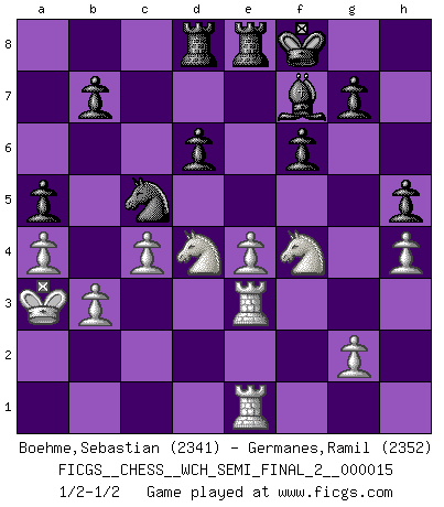 FICGS__CHESS__WCH_SEMI_FINAL_2__000015 (type : rated knockout, time : 30 days, increment : 1 day / move)