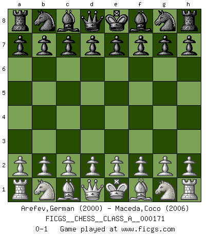 Last move : 0-1 2016 August 4 17:55:59 [Event "FICGS__CHESS__CLASS_A__000171"] [Site "FICGS"] [Date "2016.06.25"] [Round "1"] [White "Arefev,German"] [Black "Maceda,Coco"] [Result "0-1"] [WhiteElo "2000"] [BlackElo "2006"] 0-1 This chess game has been lost on time (started : 2016.06.25 13:31:50) Player Black won this chess game. Follow this game move after move (download)An attack on the wing should be met by play in the center. (Nimzovitch) Frage: Wie viele Autos haben Sie schon zerstört? - Antwort: Nur zwei. (Loek van Wely) Muchos jugadores de Ajedrez se sorprendían cuando después de la partida, Fischer explicaba con calma: 'Yo ya había analizado esta posibilidad' en una posición en la cual yo creía que no era posible de prever desde la apertura. (Mikhail Tal) Un journaliste : 'Vous préférez avoir une dame de plus sur l'échiquier ou au lit ?' Boris Spassky : 'Ca dépend de la position.' Warrior pose battles inner weakness and wins focus. You see that there is no war within you. You're on your own side, and you are your own strength. (Terri Guillemets)