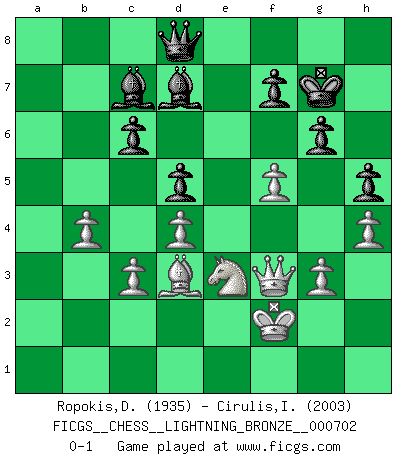 FICGS__CHESS__LIGHTNING_BRONZE__000702 (type : rated knockout, time : 0 day, 00:20:00, increment : 0 day, 00:00:30 / move)