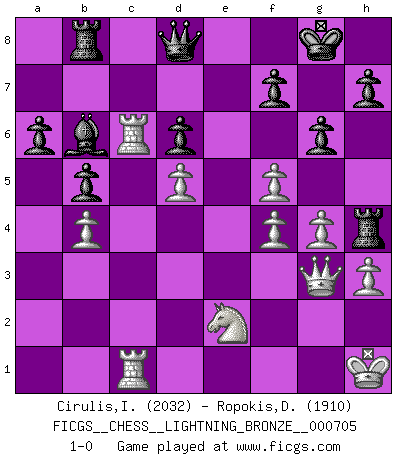 FICGS__CHESS__LIGHTNING_BRONZE__000705 (type : rated knockout, time : 0 day, 00:20:00, increment : 0 day, 00:00:30 / move)