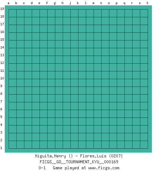 Last move : 0-1 2016 September 1 14:46:43 [Event "FICGS__GO__TOURNAMENT_KYU__000169"] [Site "FICGS"] [Date "2016.09.01"] [Round "1"] [Black "Higuita,Henry"] [White "Flores,Luis"] [Result "0-1"] [Rating 2 "0207"] 0-1 Here are the names of the openings (joseki) played in the four corners : Player White won this Go (weiqi, baduk) game. Follow this game move after move (download)Beware of the clumsy double contact. (Anonymous) Without deviation from the norm, progress is not possible. (Frank Zappa)